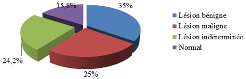 Although mammography remains a key examination in breast cancer screening, it fails to recognise a large number of cancers, about 1 in 3 of which are subcentimetric infiltrating cancers in fatty breasts, cancers that are a priori detectable by ultrasound. In his article Balu Maestro35 points out that the performance of ultrasound has made it possible to increase the specificity of mammography both in screening and in the presence of a palpable anomaly. Guégang36 in his study in Cameroon in 2011 found that the combination of mammography and ultrasound was an excellent means of detecting breast lesions.