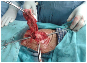 Since the first case was reported in 1884 by Wilson, hundreds of cases have been reported. We report the case of an abdominal textiloma in a 28 year old village woman para 3, who underwent tubectomy operation four years back. She was asymptomatic throughout except for the abdominal lump which she noticed four months back which was associated with pain in abdomen for the past two months. There was no history of fever, bowel or bladder disturbances and her periods were regular with average flow and not associated with pain. She was of average built with mild pallor. On per abdomen examination small suprapubic transverse scar was seen and a 24 week size lump was palpable, firm in consistency, slightly mobile side to side with lower pole not reachable. On per speculum examination cervix and vagina were healthy. Per vaginum examination revealed normal sized uterus and same lump was felt through right fornix separately from the uterus. Provisional diagnosis of ovarian mass was made and further investigations ordered. Her ultrasonography further confirmed the diagnosis of ovarian mass with no abnormality on color doppler and her CA-125 was in the normal range. She was taken for exploratory laparotomy .On giving nick in the peritoneum, pus came out and immediately suction cannula was introduced and about 1.5 litres of pus was drained. The incision was then extended and to our surprise a big sac was visible with some gauze like material. Gently we pulled it out and it turned out to be a big surgical mop. The sac was thick walled forming dense adhesions with surrounding gut and occupying the entire lower abdomen. It was separated with sharp dissection from the surrounding structures completely along with the base which was adhered at the right tubal lump. The uterus and both ovaries were normal. After thorough lavage, abdomen was closed in layers after the count of instruments and mop was checked and found to be normal. Post op recovery was fast and uneventful. Pus culture report was sterile and she was discharged on eighth day.