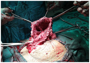 The term "gossypiboma" is a Latin word ‘gossypium’ which means cotton and the suffix -oma, means a tumor. It is described as a mass inside a patient's body made of cotton matrix and surrounded by a granuloma secondary to foreign body reaction¹. Many a times "Textiloma" is used as synonym to describe the same, as surgical sponges are also made of synthetic cloth. In this case report, the patient came with a painless lump of 24 weeks with lower pole not reachable on palpation and felt separately from the uterus during vaginal examination so the diagnosis of ovarian lump was made. Although ultrasonography is a good diagnostic tool for diagnosing pelvic masses it failed to identify the retained gauze and reported it as ovarian mass in this case. CT scan and MRI demonstrate a sensitivity and specificity of 100% and 94%, respectively in the evaluation of ovarian mass due very clear anatomical delineation but it was not performed in this case due to monetary constraints.2 Ovarian lumps are usually asymptomatic and reported at a later stage due to distension of abdomen or mechanical obstruction hence the primary diagnosis of ovarian tumor was made in this case. Gossypiboma being a rare entity and with no past surgical records available, it was easily missed as preoperative diagnosis. Apart from presenting as lump these retained intra abdominal gauzes can migrate into any part of the gastro intestinal lumen like ileum, colon, stomach or even bladder and can cause complete or partial obstruction. Two major types of reaction occurring in response to retained surgical gauze can lead to abscess formation with or without a secondary bacterial infection and an aseptic response resulting in encapsulation of the retained gauze and adhesion formation.3 In this case both the things were present. On opening up the mass 1.5 litres of pus escaped which suggests abscess formation in response to retained mop. Also it was well encapsulated and densely adhered to surrounding structures. Gossypiboma may remain asymptomatic for long periods of time, sometimes months or years following surgery.4 In this case also, patient was asymptomatic for many years post surgery and lump associated with pain was recently noticed.