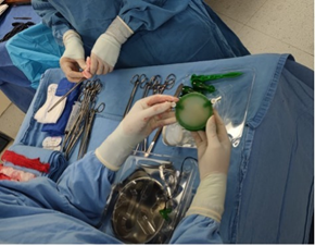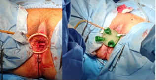 For the procedure, the GelPOINT Mini advanced access platform (Applied Medical, Rancho Santa Margarita, CA) was used (Figure 1) to maintain pneumoperitoneum and introduce the laparoscopic forceps. After the application of balanced general anesthesia, the patient was placed in a gynecological position, asepsis and antisepsis of the vulvovaginal region were performed, and a Foley catheter and sterile fields were placed. The steps that were carried out are described below: