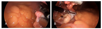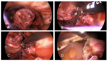 From September 2021 to July 2022, 7 hysterectomies have already been performed using the same approach with excellent results, in patients with an average age of 45 years (with a range between 34-60 years), 3 (42.8%) with a BMI <30kg/m2. The uterus with the highest weight reported was 440 gr. With the exception of the patient reported in this case, all had an indication for hysterectomy due to abnormal uterine bleeding that required surgical management. All patients had a successful approach, without immediate or late post -surgical complications. The median operative time was 110 (interquartile range [IQR], 100-130) minutes, with a median surgical blood loss of 85 (IQR, 50-350) ml. Nulens et al.16 reported 114 cases in a study of vNOTES hysterectomy indicated by enlarged uterus. In their study, the average age of the patients was 50 years, 19% were obese and 3.5% were morbidly obese. The sizes of the resected uteri were 281 to 3361 g, with an average weight of 559 g, and with an average surgical time of 63 minutes, 13 minutes shorter compared to the patient in our case. The main complications reported by the authors were: bleeding in the first 24 hours in 2.6% patients, one case of late minor complication, a conversion rate to open surgery of 0.9% and a success rate of 99%. Similar to our data, the authors reported no complications from ureteral, bladder, or intestinal injuries, nor life- threatening complications or intensive care unit admission.16