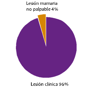 Those who consulted with clinical injury (all by self-examination) were 49 patients (96.1%) of the 51 treated; there were only 2 (3.9%) with subclinical diagnosis by imaging detection (mammography and breast ultrasound), both within Stage I (Graph 2).