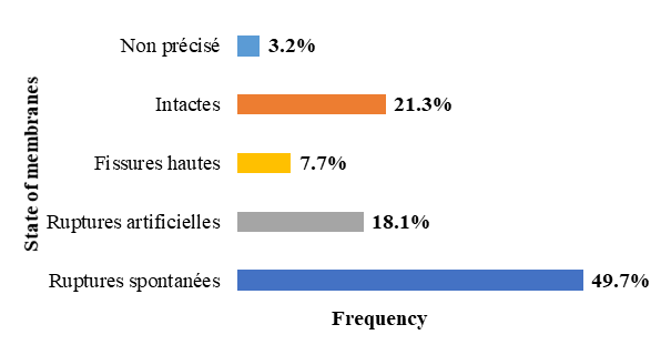 In our study, the epidemiological profile of the patients was that of a woman aged 28 years on average, of low socio-economic status (83.2%), primiparous (45.2%) or pauciparous (46.5%), carrying a full-term pregnancy (67.7%) and living outside the South district (72.3%). This profile does not differ from those reported in the literature. Indeed, Mbaye10 at the Philippe Senghor Health Centre found an average age of 27 years and a predominance of primiparous women (67.2%). In India, the same finding was made in the study by Kumar,13 where the 21 to 25 age group was the most represented and primiparous women were in the majority (61.1%). He also reported a higher proportion of full-term pregnancies, which could be explained by the fact that the cardiotocograph is often used to monitor labour.