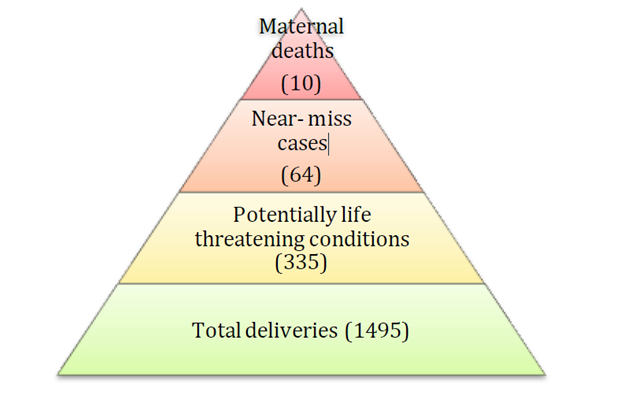 The incorporation of near-miss cases into maternal death enquiries would strengthen these audits by allowing more rapid reporting, comparison with maternal deaths, reinforcing lessons learnt and establishing requirements for intensive care. The survival of pregnant woman is dependent on the disease, her basic health, the health care facilities and the personnel of health care system. Hence, near-miss events must be estimated separately for those already in a critical condition on arrival and those developing complications after admission; the first as a good indicator of the effectiveness of referral systems and the second defining a potential pattern of maternal death.
