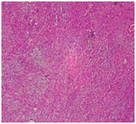 On microscopic examination, multiple sections showed spindle shaped cells arranged in storiform and palisading pattern. The cells were monomorphic with central nucleus. No mitotic activity could be identified (Figures 3 –5).