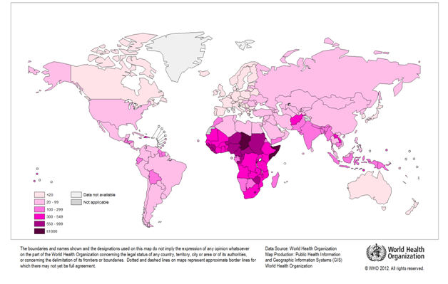 Figure 1 Maternal mortality ratio (per 100000 live births), 2010.