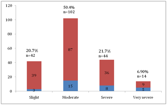 Urinary incontinence were present. These definitions follow the standardized terminology for lower urinary tract symptoms endorsed by the International Continence Society.19 Severity of UI was assessed as slight, moderate or severe based on the frequency and amount of leakage using the incontinence severity index.17,18 The questionnaire was used to gather information about socio‒ demographic pattern, predisposing and risk factors, health seeking behavior including the prevalence of UI. Data analysis was done using SPSS version 20. Odd’s ratio and chi‒ square test was used for univariate analysis.