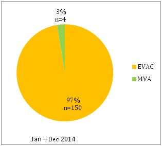 We audited the MVA service since intense promotion. We looked at the number of MVA over a period of five months from February to June 2015. 28 out of 68 patients had MVA (Figure 3) and the various indications were as in Figure 4. The MVA uptake was improved from 4% to 41%. 93% (26/28) returned patient satisfaction survey and all were positive about the service and the team (Table 1).