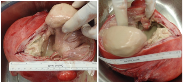 Figure 5 Patient Number 1, Intraoperative pictures showing gross pyometra upon exploration of the uterine cavity.