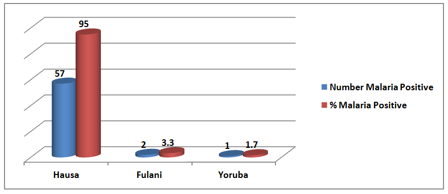 Figure 2 Distribution of malaria parasitaemia among the subjects based on ethnicity.