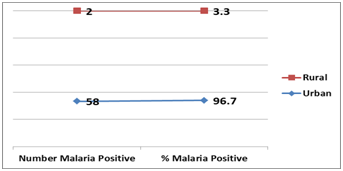Figure 3 Distribution of malaria parasitaemia among the subjects based on residence.