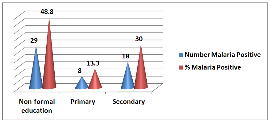 Figure 4 Distribution of malaria parasitaemia among the subjects based on educational status.