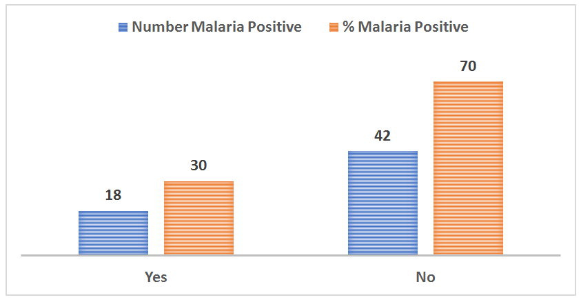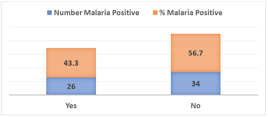 Figure 6 Distribution of malaria parasitaemia among the subjects based on use of insecticide treated mosquito nets.