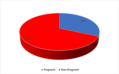 Figure 6 Showing pregnancy rate in patient suffering from endometriosis. A high percentage (68.33%) of patients in endometriosis group did not achieve pregnancy.