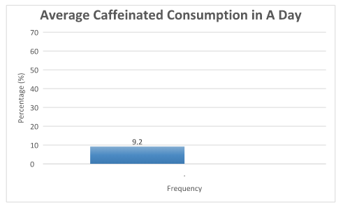 Caffeinated products and foods have become more widely available over the last decade. Due to this increased availability and usage, people generally link certain perceptions with caffeine consumption. The optimal amount of caffeine usage varies in literature and depends on various factors like age, gender and presence of any disease. There has been a substantial amount of research published on the benefits and drawbacks of caffeine consumption.2,10,11 Students seem to be aware of the effect of caffeine consuming too much caffeinated beverages. Findings from this study showed that most of them consume only once on a typical day and none of them consume more than five (5) servings a day. The average Malaysian is estimated to consume about 2.5 cups of coffee per day. Literature findings indicate that consuming a moderate dose of caffeine which is 200-400mg/day or equivalent to two to four cups of brewed coffee is considered safe for a healthy adult.2,3,22
