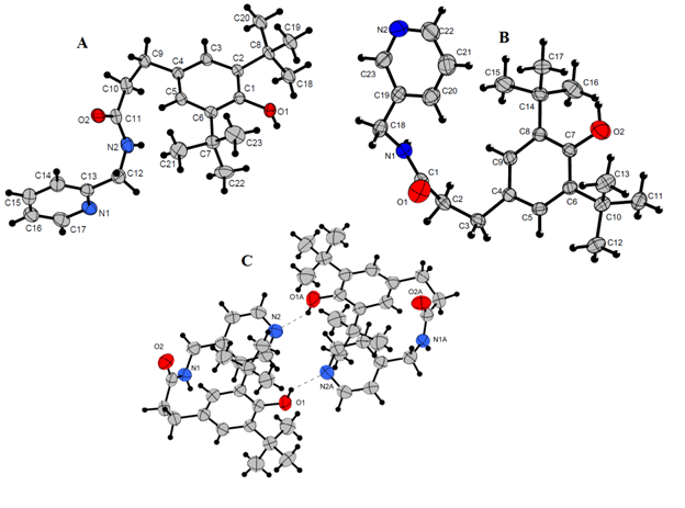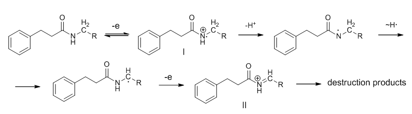 In the case of –(CH2CH2)- linker such ability is restricted and the antioxidant activity of amides from phenol containing propionic acid was higher. To conclude the presence of the linker between phenol and amide fragments influences the anti-radical activity of compounds.