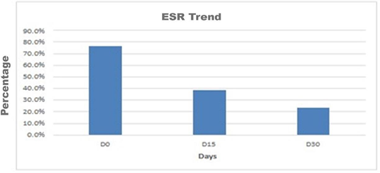 For our study, the following table shows the ESR mean value trend during the treatment