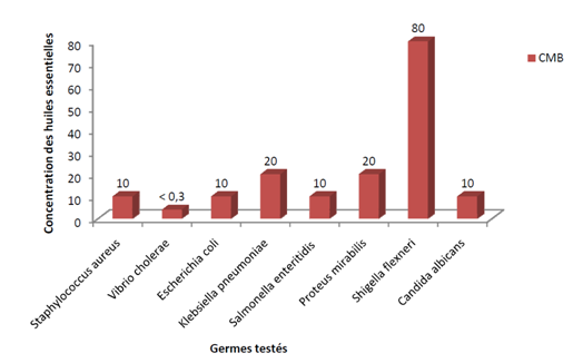 Figure 1 Minimal bactericidal and fungicidal concentrations of the Artemisia annua essential oil on 8 bacterial strains and a Candida Albicans.