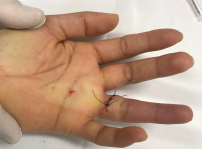 The application of the WALANT technique increased patient comfort and convenience, allowing the patient to be discharged on the same day, almost immediately.