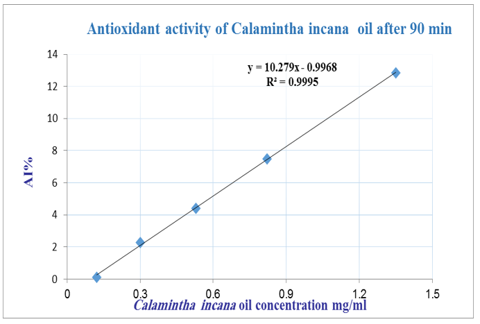 The antioxidant activity of the oil after 90 min. is illustrated in Figure 6.