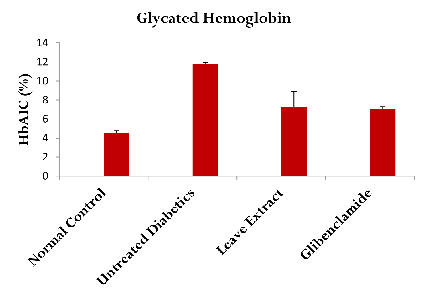 Figure 3 The effect of Bridelia ferruginea methanol leaf extract on Glycated Hemoglobin (HbAIC) levels.