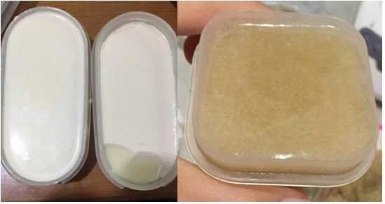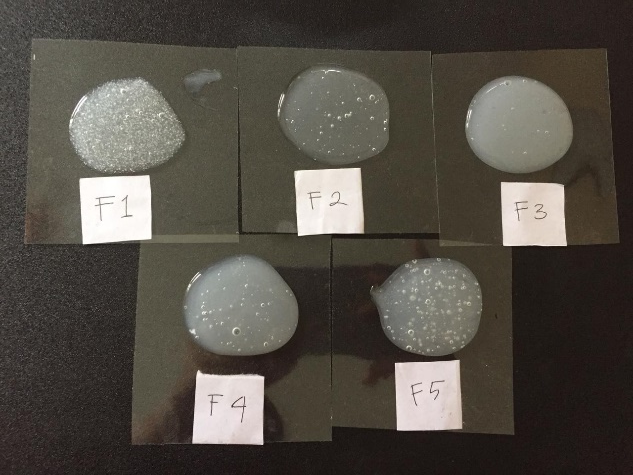 The peel-off gel mask is made by mixing several ingredients that have been prepared. Five variants of the formulation were made, with a comparison between yogurt and seaweed. The first formula (F1) is yogurt and seaweed (4:0). The second formula (F2) is yogurt and seaweed (0:4). The third formula (F3) is yogurt and seaweed (3:1). The fourth formula (F4) is yogurt and seaweed (2:2). The fifth formula (F5) is yogurt and seaweed (1:3). In this process, polyvinyl alcohol (PVA) was used as a film-forming agent, HPMC (hydroxypropyl methyl cellulose) as a gel base, DMDM Hydantoin as a preservative, propylene glycol as a humectant, and aquades as a solvent.