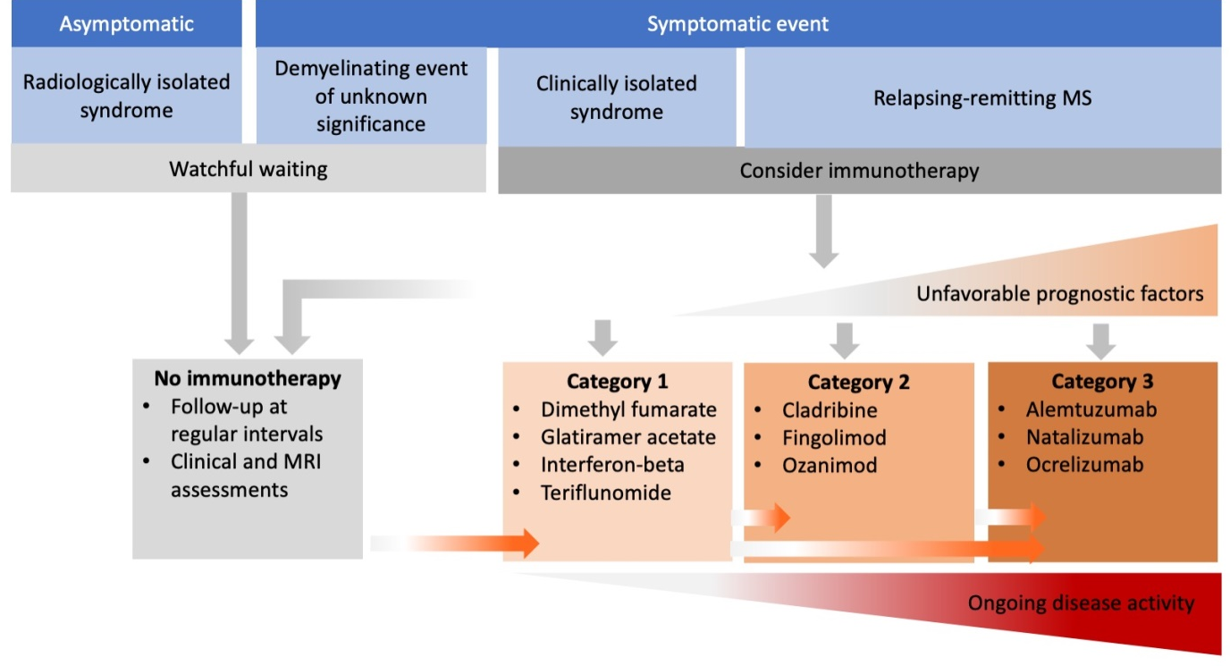 Figure 5 Summary of the selection and timing of DMTs to treat relapsing MS. Reproduced from Bayas A et al. Neurological Research and Practice. 2021; 6;3(1):45.50 Open access; refer to https://creativecommons.org/licenses/by/4.0/).
