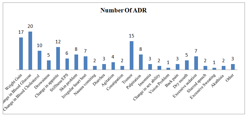 Both admitted and outdoor psychiatric patient will be enrolled in the study. This is an exploratory open label study design. An adult patient of either sex was screened by the consultants. Outpatient records and other relevant documents of patients visiting psychiatric OPD and IPD Department were reviewed for ADRs and information was recorded in a suitably designed data collection form. Informed written consent was obtained from the patients. The case sheets were screened for ADRs, and those observed by the consultant and reported by the patients were also noted.