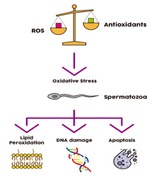 Accumulation of ROS can produce OS, which alters the spermatozoa and can cause membrane lipid peroxidation, DNA damage and cell apoptosis. ROS include radical and non-radical species. Similarly, the term RNS refers to a group of nitrogen-containing molecules with different chemical reactivity (Table 1).