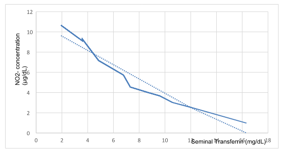 Concentration of Nitrites and seminal Tf showed an inverse relationship (R2=0,921; M= -0,7057; p0,05).
