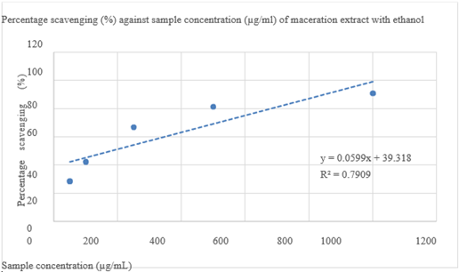 Figure 6 Percentage scavenging (%) against sample concentration (mg/mL) of maceration extract with ethanol.