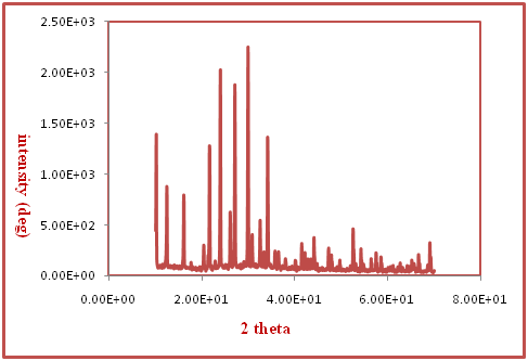For preparing Zeolite A, 0.723 g of sodium hydroxide was dissolved in 80 mL distilled water which was then divided into two equal volumes in polypropylene bottles. To first half, 8.258 g of sodium aluminate was added and mixed gently in capped polypropylene bottle up to its clearance. To the second half, 15.4 g of sodium metasilicate was added and mixed gently in capped polypropylene bottle up to its clearance, thick gel was formed quickly after pouring silicate solution into aluminate solution and polypropylene bottle was kept for 4 h in oven at 99oC. The required mixture was washed by distilled water and centrifuged up to PH ≤ 9 and dried at 100oC .The sample was ground into powder and calcined at 500 oC for 4 h in order to remove water and organic precursors.