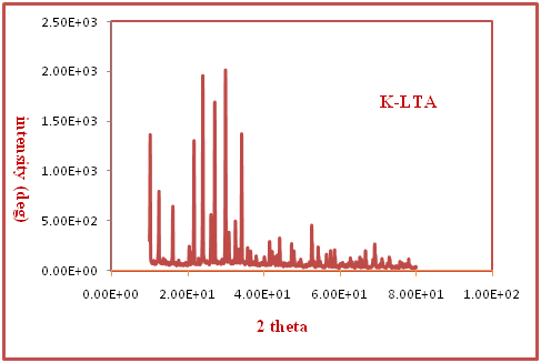 From powder X-ray diffraction (XRD) studies, the catalyst was analyzed by using Shimadzu XRD 6000 model equipment. The operational detailed technique were set as follows: Copper Kα radiation at 40 kV/30 mA, with a goniometer speed of 2°/min and a step of 0.02° in the 2θ range scanning from 10° to 70° for Na-zeolite A and 2θ range scanning from 0° to 80° H-Zeolite A, K-Zeolite A and Mg-Zeolite A.