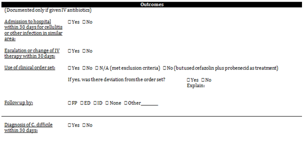 Primary outcomes: The type and duration of antibiotics used to treat outpatient cellulitis and adherence to the clinical order set