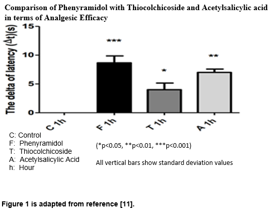 In silico, in vitro, and in vivo studies carried out in 2021, it was shown that Phenyramidol exhibited statistically significantly higher analgesic efficacy than thiocolchicoside and acetylsalicylic acid, as well as anti-inflammatory efficacy equivalent to ibuprofen and dexamethasone (Figure 1).11