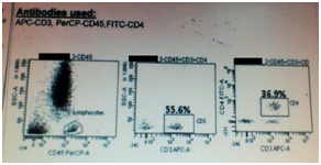 Since the initial screening for HIV test showed a positive result a CD4 count was done. The table below shows the results of the tests indicating an abnormally low CD4+ count.