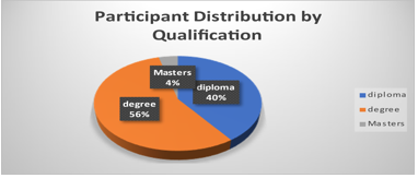 Graph 3 Provided participant distribution by qualification which indicated that 60% held degrees and 40 % had diploma. In essence, this area has sufficiently qualified teachers for FTT.