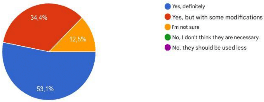 In the question whether simulators should be used more frequently in the vocational training of the students surveyed, 53.1% said yes definitely, 34.4% yes but with some modifications and 12.5% are not sure. As can be seen in Figure 3.5–22