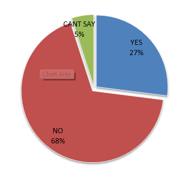 Out of 200 respondents 68% response was in NO, 27% consented with YES and 5% of the respondents were not aware of it so their response was CANT SAY.