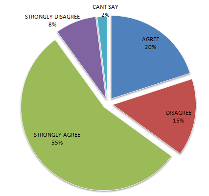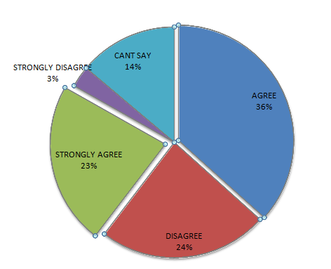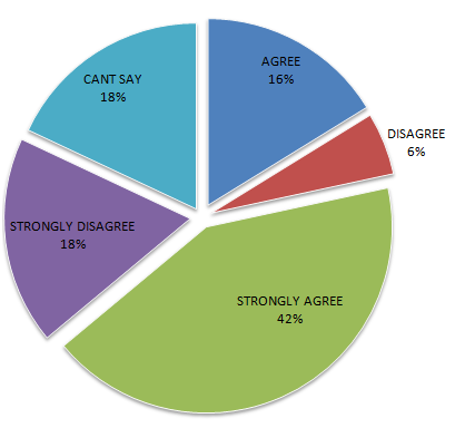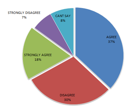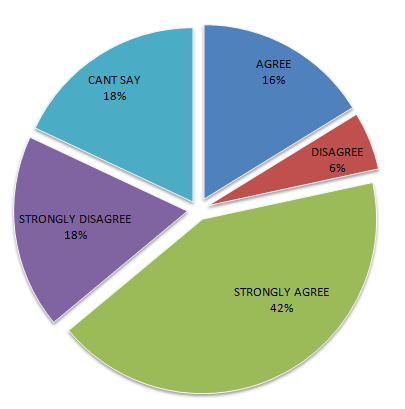 Out of 200 respondents, 37% agree on the fact that it’s a common phenomena, 24% strongly agree, 23% regard it not to be a common phenomena, 3% strongly disagree of it being a common phenomena and 13% respondents had no idea of this concept so they had no opinion about it.