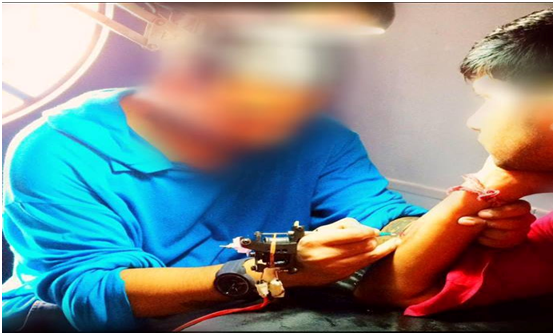 Health awareness: Tattoo is something that is done into the skin, therefore if hygiene is not maintained then could spread disease or contamination. Beside this if a person has no proper tattoo education then it could also affect the person who is getting tattoo. In India, there no such professional courses about tattoo, but now some studios provide their own courses, and also provide a certificate after completing it. Many of the cases are heard from the tattoo artist those who doesn’t maintain the basic hygiene like wearing a glove. Neel Das has shared a picture with us that shows the completely how much there is lack of awareness related with tattooing in our society (Figure 1).