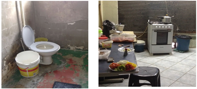Virtually all tenements had collective toilets, with the exception of two buildings that had bathrooms in the rooms, and in some cases it was possible to find rooms with or without private bathroom in the same tenement, varying the value of the room. From the information on the total number of bathrooms in each tenement, provided by 22 of the managers and owners interviewed, a relation can be drawn between the number of dwellers in the tenements by available toilets. Of this universe, nine tenements had between 1 to 5 residents per bathroom; six tenements had between six and ten residents per bathroom; and seven tenements had between 11 and 17 inhabitants per bathroom, constituting, at least apparently, in the most serious cases of access to good hygiene conditions. However, during the field survey, it was recorded the testimony of 14 residents, from three different tenements, who declared that they live in dwellings with an average of more than 20 people per bathroom, which may suggest that access to good housing conditions. Hygiene can be even more dramatic. But in addition to the amount of toilets, the problems also refer to the infrastructural conditions of the available toilets. It was verified in the field survey tenements with bathrooms in bad conditions, the great majority without hot water, and in some cases without piped water, as can be evidenced in Figure 3.