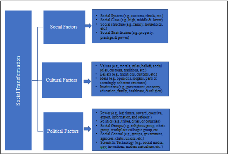 To make it more comprehensive, the following conceptual framework illustrates the three major factors of social transformation (Figure 1).