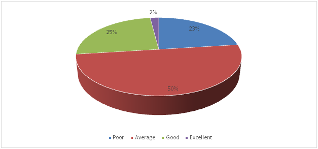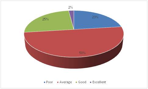 Training on governance matters: 86.7% of principals confirmed to have received training on matters of governance, management and curriculum, from the district and circuit offices in 2017/18 financial year, while 12% have partially received it and only 2% never received any assistance. However, when asked to rate the departmental in-house capacity building or training for teachers, the results on the pie graph below reveals the perception, where 50% rate the trainings on average, 23.3% rating them poor, 25% rating them good and only 1.7% rate them as excellent (Figure 2).