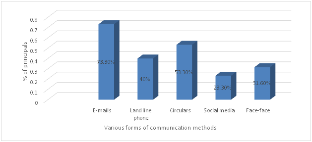Use of e-mails: Information Technology (IT) should be encouraged to network more schools and circuit offices. A total of 70% of participants confirmed the use of e-mails as their regular communication channel. However, many are using personal e-mails. This means departmental records are not well-managed.