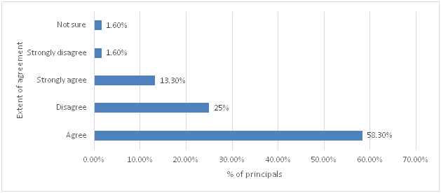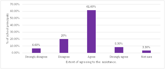 Assistance at beginning of teaching: When principals were asked if they were assisted by the district/circuit officials at the beginning of the year, with the monitoring tool where assistance was needed, 61.6% agreed to have been assisted, though 20% disagreed, but 8.3 strongly disagree while 3.3% is not sure whether they received same assistance or not (Figure 6).