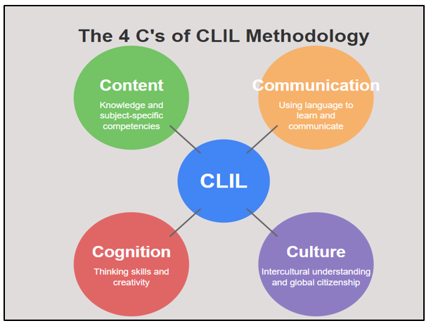 The structure of CLIL is grounded in four essential principles, known as the “4 Cs”: Content, Communication, Cognition, and Culture (Figure 1).4
