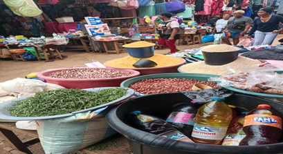 The above photo is showing the different food items that are sold by a displaced woman. Dealing in different food stuffs enables her to attract many clients and make some profit. With this, she is able to sell food that are in and out of season so that she can always have something to offer to the client.