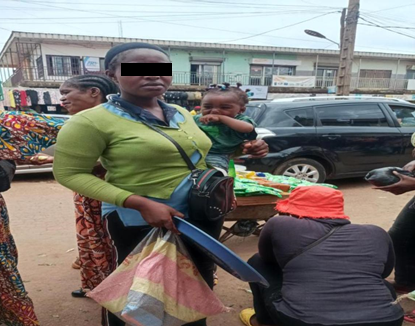 New family dynamics actually stem up as a result of conflict and displacement. Most of the women who have displaced from the Northwest and Southwest region are faced with new shift in social, economic and political connectivity which in turn pose directly on child upbringing. The change in social setting, new neighborhood and different interactive network and financial opportunities create a shift in all the facets in the displacement trajectory. The family which is the smallest unit in the society are often very much affected by this change. Mothers prefer to carry their children with them to the market because they do not trust those in their environment. These women are not aware of the danger they are exposing their children to by bringing them to public spaces at very tender ages (Figure 4).