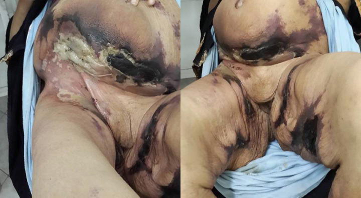 Surgical interventions were performed in Port-Fouad general hospital, Port-Fouad, Port-Said, Egypt. Surgical interventions were of triple multimodal approach including hemodynamic stabilization, broad spectrum antibiotics, and surgical debridement. All necrotic and non-viable tissues were excised until the viable tissue was reached. Multiple sittings of surgical debridement were needed for the vast majority of cases. Very close patients’ observation and wound care were mandatory.